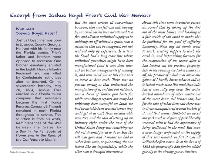 For this activity, your task is to read an excerpt from a memoir to understand how the Civil War impacted people's lives in Florida.