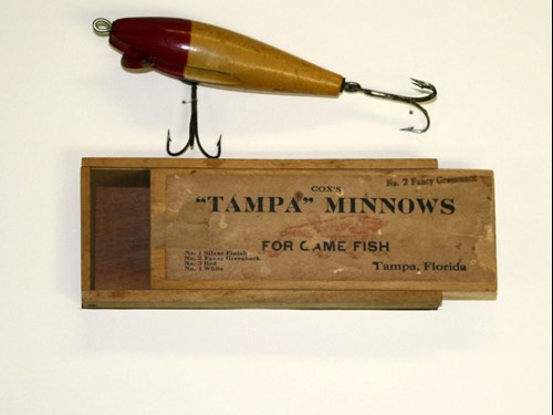 Cox made the Tampa Minnows and ran ads in the local newspaper for these lures as early as 1916. He apparently stopped selling the lures in the early 1920s, but kept the store until the 1930s.